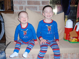 Of course, the presents were PJs and both boys were enamored. Especially Justin.